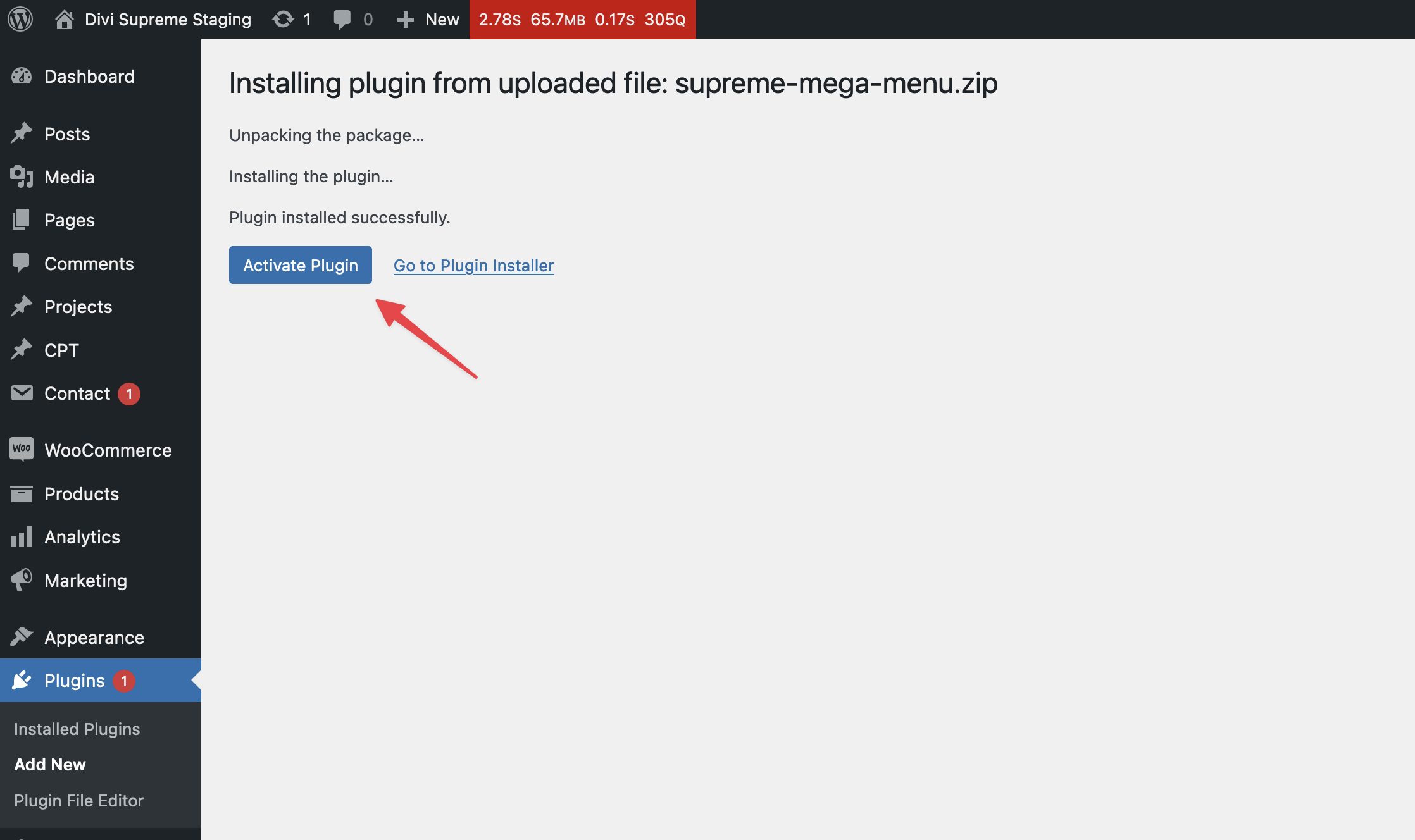When you click the Install Now button, It will take you to the next screen and ask you to Activate the plugin. Simply click the Activate button to activate the plugin on your site.