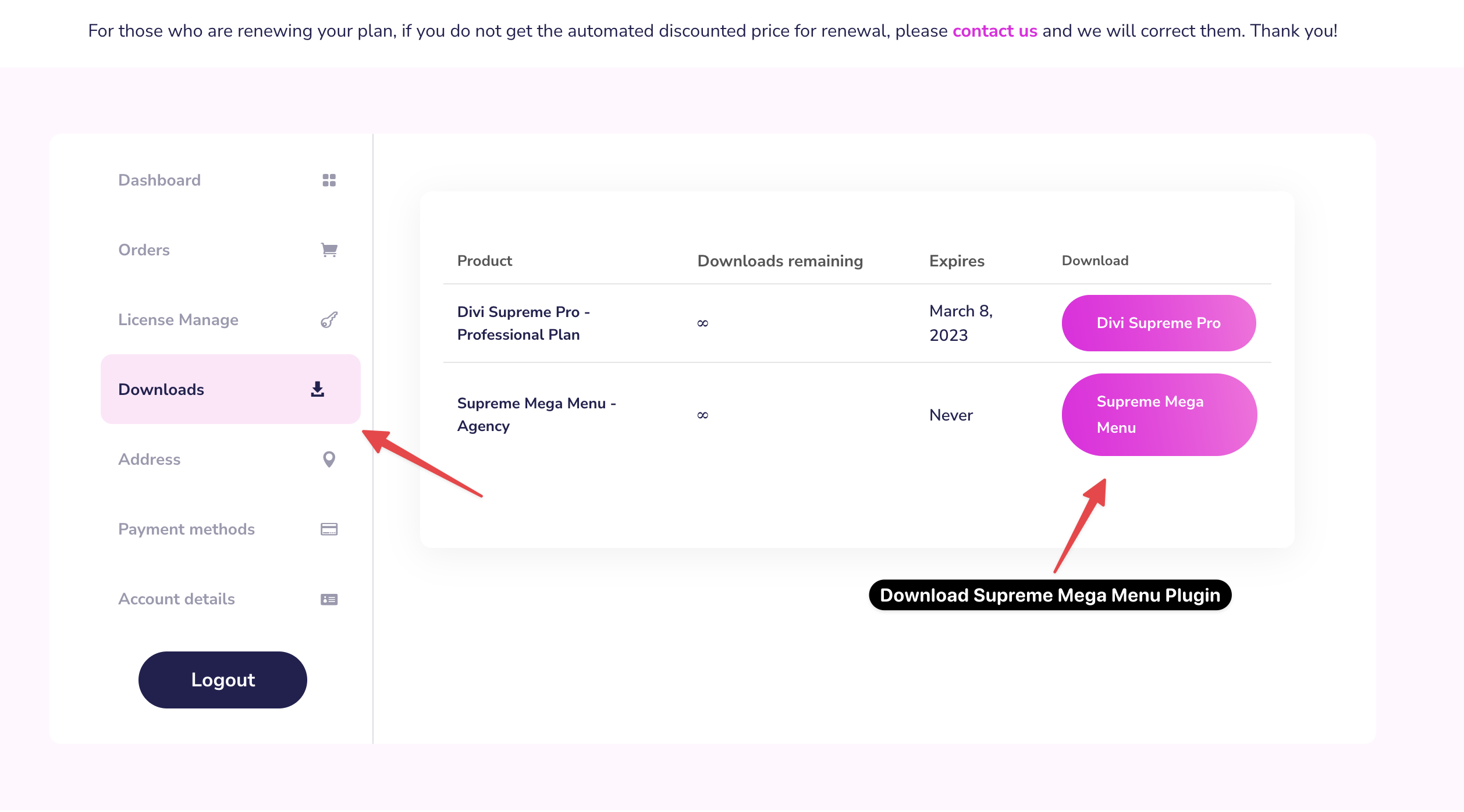 First, you'll need to Download Supreme Mega Menu Plugin from your [Divi Supreme Account Area](https://divisupreme.com/my-account/) -> Downloads.